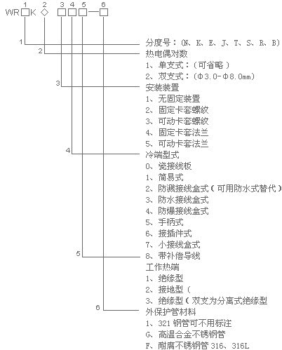 鎧裝熱電偶廠家為您介紹WR□K系列鎧裝熱電偶是本公司精心設(shè)計制造的新一代系列產(chǎn)品。本系列產(chǎn)品符合國際電工委員會(IEC)標(biāo)準(zhǔn),技術(shù)性能可替代同等現(xiàn)代化設(shè)備和高科技領(lǐng)域,也適合于進口成套設(shè)備的維修更換或輸出項目的成套配套以及技術(shù)改造項目的配套。鎧裝熱電偶與一般工業(yè)熱電偶一樣,與顯示儀表等配套,在一定的使用范圍內(nèi)對氣體、液體介質(zhì)或固體表面溫度進行自動檢測或自動調(diào)節(jié)。 本公司的系列產(chǎn)品規(guī)格齊全,質(zhì)量可靠,并熱忱為用戶服務(wù)。