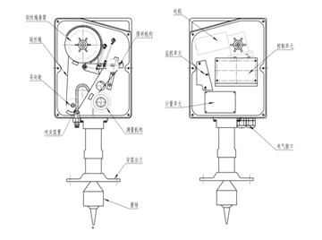 重錘式料位計的主要部件有:重錘、安裝法蘭、測量機構(gòu)、吹灰裝置、導向輪、鋼絲繩、鋼絲繩卷筒、擺桿機構(gòu)、控制單元、電機、測控單元、計量單元和電氣接口。
